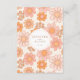 Enhance your wedding stationery with our elegant retro 70s themed wedding details card. This beautiful card features a bride and groom monogram on the back, set against a delicate orange, pink and yellow daisy floral design. The simple minimalist calligraphy script, elegantly displayed on a bohemian arch, adds a touch of classic sophistication. Perfect for adding a timeless and refined touch to your wedding celebration. Ideal for spring and summer weddings with a botanical or boho theme.