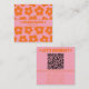 Retro Orange Pink QR Code Groovy Floral Trendy Fun Square Business Card