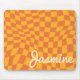 Retro Orange Warped Chequered Board Custom Name Mouse Mat