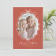Retro Orangish Red and Pink Wavy Photo Holiday Card