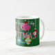 Retro Ornaments Green Christmas coffee mug has a vintage feel perfect for anyone that loves midcentury modern designs. There are seven hand painted retro ornaments above a starburst and atomic symbols pattern. The greeting says, Wishing Everyone a Very Merry Christmas, The Johnsons. You can personalise this with your own greeting, or keep it and just personalise with your family's name or company name. This coffee mug comes in two sizes, is microwave and dishwasher safe with ceramic material. This coffee much is also printed and designed in the USA. This beautiful Christmas coffee mug is an excellent addition to any home to decorate for the holiday season.