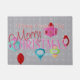Retro Ornaments Grey Christmas doormat has a vintage feel perfect for anyone that loves midcentury modern designs. There are seven hand painted retro ornaments above a starburst and atomic symbols pattern. The greeting says, Wishing Everyone a Very Merry Christmas, The Johnsons. You can personalise this with your own greeting, or keep it and just personalise with your family's name. This doormat is a non-slip rubber that won't crack or buckle, this mat resists fading, mould, and mildew and can be easily cleaned with a hose. This beautiful doormat is an excellent addition to any home to greet your guest during the holiday season.