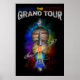 This retro style space art design depicts a large passenger starship travelling among the solar system. All nine planets are present and the 'Grand Tour' title is shown prominently in large fonts. This design is about a positive future where human kind can go on vacation in a large space ships to visit the solar system.