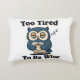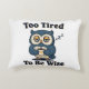 A cozy rectangular pillow featuring a sleepy retro owl and relatable tired humor.