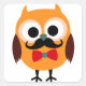 Retro Owl with Handlebar Moustache Moustache Square Sticker