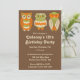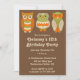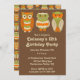Create custom invitations for any special event with a vintage flair. These custom invites feature cute retro style illustrations of owls in orange, cream and avocado green set against a brown background.
