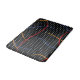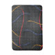 Retro 1980’s style primary colour paint strokes splatter pattern on a geometric black and white dotted background.