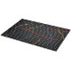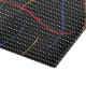 Retro 1980’s style primary colour paint strokes splatter pattern on a geometric black and white dotted background.