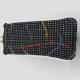 Retro 1980’s style primary colour paint strokes splatter pattern on a geometric black and white dotted background.