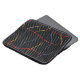 Retro 1980’s style primary colour paint strokes splatter pattern on a geometric black and white dotted background.
