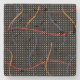 Retro 1980’s style primary colour paint strokes splatter pattern on a geometric black and white dotted background.