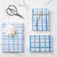 Retro Painted Plaid Pattern in Baby Blue and White Wrapping Paper Sheet