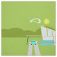 This Retro Palm Springs House with Car Combed Cotton Fabric is a mid century modern lover’s dream. The minimalist art design features a sleek orange and glass house with a dramatically sloping checkmark shape roof. The red door offsets the orange stone planter filled with greenery and the decorative turquoise cinderblock privacy screen. Staggered concrete blocks form the perfect walkway through the lush, green lawn. A white carport offers shelter to a turquoise and white classic 1950’s car with fins. The car is perfect for driving around the green, rounded mountains in the distance. The kitschy 1960’s style house looks like a shady oasis from the hot, Palm Springs sun.