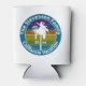 Retro Palm Tree Tropical Matching Family Reunion Vacation Custom Can Cooler. Personalise with your family name, vacation destination, and year. Suitable for any destination with palm trees, such as California, Hawaii, Florida, or any other worldwide vacation spot. Teal border.