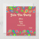 Colourful paisley pattern with red ,neon green ,blue droplets .Playful retro invitation card with oriental touch .Great at retro parties ,birthdays ,celebrations or for any other cheerful occasion .Template design by Alma Wad .Customise both sides now with the details of your own party/event /announcement .
