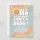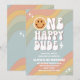 Celebrate your little ones milestone with this retro pastel 1st birthday invitation featuring playful wavy stripes, bold typography, and whimsical details like smiley icons and sparkles. Perfect for a fun, nostalgic party theme, this customisable card sets the tone for peace, love, and joy. Designed to impress guests and optimised for search visibility, its ideal for parents planning a stylish, memorable celebration.