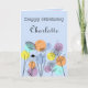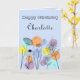 Retro style birthday card, line drawing flowers on a pastel background with circles in retro pastel colours.