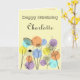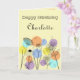 Retro style birthday card, line drawing flowers on a pastel background with circles in retro pastel colours.