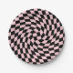 Retro Pastel Black Pink Checks Warped Chequerboard Paper Plate