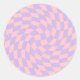 Retro Pastel Blue Pink Warped Checks Chequered Classic Round Sticker