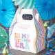 Retro pastel colourful modern minimal funky birthday era party decor favour box design.
