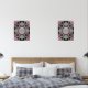 Capture the essence of 70s retro vibes with this bold geometric floral mandala design. A large central blooming flower in soft mint, pink, and lavender is surrounded by radiating circular patterns, starburst wheels, and delicate daisy accents—all set against a striking black background with layered pastel borders. This hypnotic, symmetrical artwork blends psychedelic flair, sacred geometry, and vintage floral motifs, making it perfect for boho lovers, festival-goers, yoga enthusiasts, and fans of trippy abstract art.