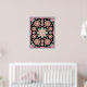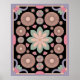 Elevate your walls with this mesmerizing retro-inspired poster featuring a bold geometric floral mandala. At its center, a large blooming flower in soft mint green, pink, and lavender petals radiates outward, surrounded by hypnotic circular starburst patterns, concentric wheels, and delicate daisy accents. Framed by layered pastel borders on a dramatic black background, this symmetrical design perfectly blends 70s psychedelic vibes, sacred geometry, and vintage floral artistry. Ideal for boho bedrooms, yoga studios, meditation spaces, living rooms, or anywhere you want a touch of trippy, calming energy.