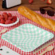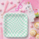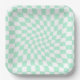 Retro Pastel Mint Green Checks Warped Chequerboard Paper Plate