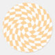 Retro Pastel Peach Warped Checks Chequered Classic Round Sticker