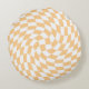 Retro Pastel Peach White Warped Check Chequered Round Cushion