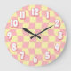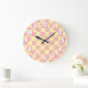 Retro Pastel Pink Yellow Wavy Chequerboard Large Clock