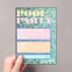 A retro, 80s/90s inspired pool party invitation using one of my own photos as the background. Lettering and graphics in bright pastel block colours.