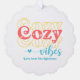 Celebrate the holidays in style with these Cosy Vibes retro Christmas photo ornament cards. Featuring a trendy three-colour design and room for your favourite family photo on the back, these ornaments double as keepsakes that loved ones can hang on their tree. Perfect for sending warm holiday wishes, these personalised Christmas ornament cards are both festive and memorable, designed to spread cheer and cosy vibes all season long. If you have a certain colour scheme in mind that you don't see, message Party Peeps and it can be custom made just for you!