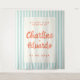 Make a bold statement at your celebration with this retro pastel striped wedding backdrop. Designed with playful vertical stripes in soft colours and coral lettering, this oversized banner works beautifully as a welcome sign, ceremony backdrop, or photo booth background. Perfect for couples who love a touch of vintage charm and modern whimsy, this banner transforms any wedding venue into a stylish, unforgettable setting.