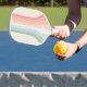This set of pickleball paddles features a geometric striped retro background in soft pastel colours and your name of choice (or delete sample name and leave space blank).