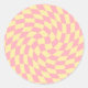 Retro Pastel Yellow Pink Warped Check Chequered Classic Round Sticker
