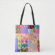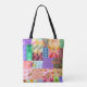 A patchwork retro tote filled with vibrant colours, groovy lines, and flowers, giving off a fun and funky vibe. Perfect for everyday use, this tote bag is relevant to individuals who love retro fashion and colourful designs. Ideal for beach trips, shopping outings, or carrying work essentials.