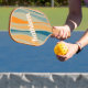 Retro inspired colours and pattern pickball paddle that is personalised with your name.