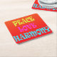 Colourful neon letters on these wonderful Retro Peace Love Harmony square coasters.