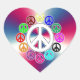 bright colourful small peace signs surround a large white peace sign on a groovey red, white, and blue background. may peace prevail