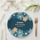 Retro Peach Dark Green Boho Flower 40th Birthday Paper Plate
