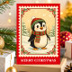 Retro Penguin Christmas Postage Stamp Holiday Card