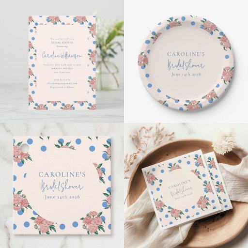 Blue Polka Dot Floral Bridal Shower DecorationsDesigned by Opal Ellery