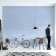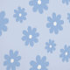 The pattern showcases cheerful daisies scattered across a serene periwinkle backdrop, creating a soothing and inviting environment perfect for a nursery or playroom. The retro-inspired design combines a classic floral motif with a refreshing colour palette, making it ideal for creating a whimsical and nurturing atmosphere.