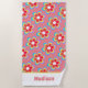 Retro Personalised 70s Flowers beach towel. Coral Blue 1970s Vintage Flower pattern abstract florals easy to personalise with a name.