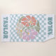 Multi Custom Colour and Font Style - personalised beach towel with name, retro chequered background and flowers. Customise all colours as you wish! Cool idea for Bridesmaid gift!