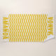 personalised Coastal theme beach towel yellow and cream with wavy stripes are the perfect vacation gift, birthday gift or bridesmaid gift for a family vacation gift.