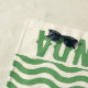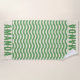 personalised Coastal theme beach towel green and cream with wavy stripes are the perfect vacation gift, birthday gift or bridesmaid gift for a family vacation gift.