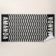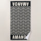 personalised Coastal theme beach towel black and white with wavy stripes are the perfect vacation gift, birthday gift or bridesmaid gift for a family vacation gift.