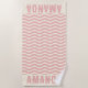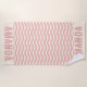 personalised Coastal theme beach towel pink and cream with wavy stripes are the perfect vacation gift, birthday gift or bridesmaid gift for a family vacation gift.